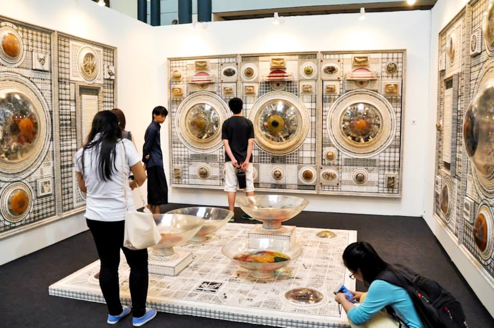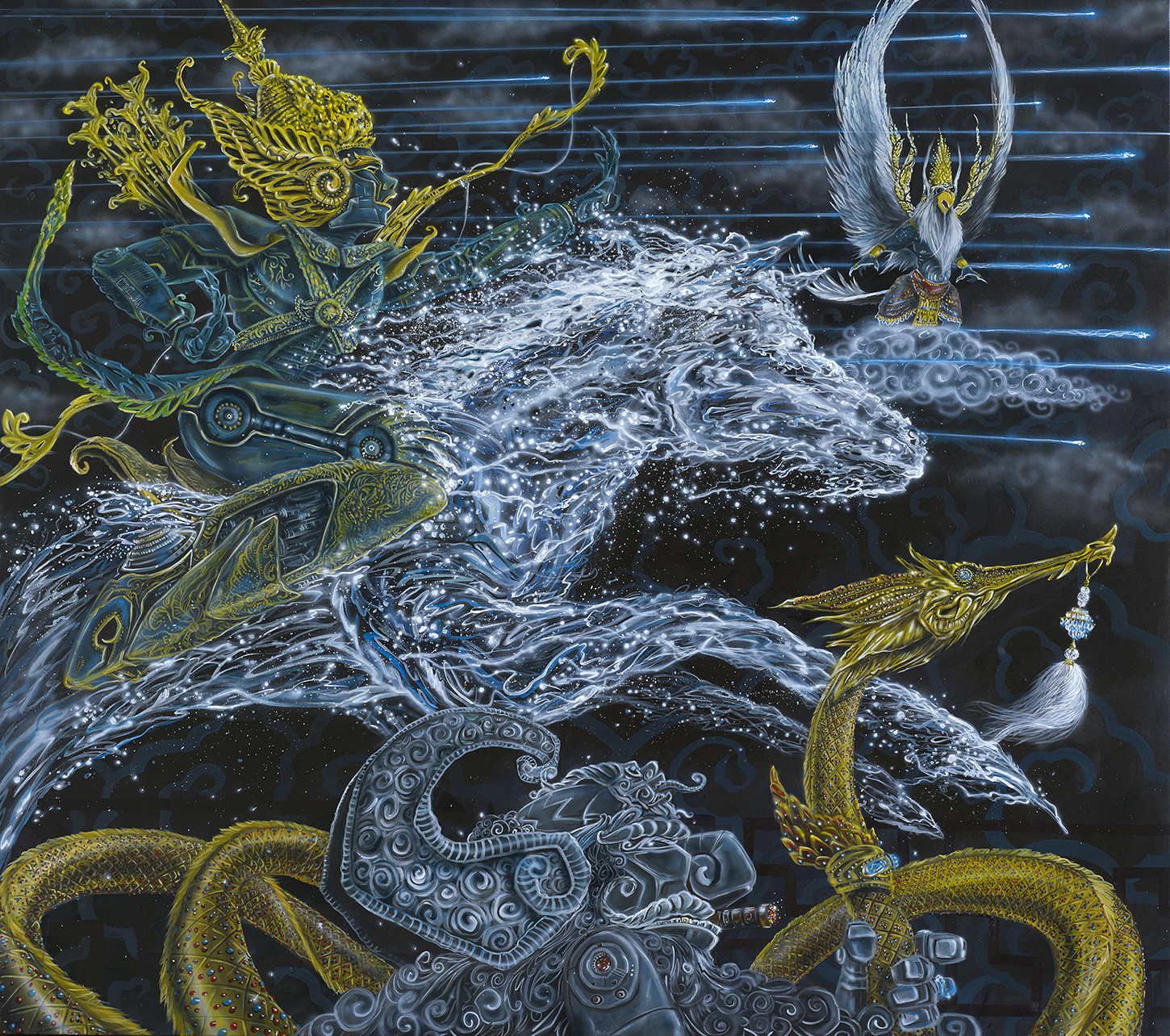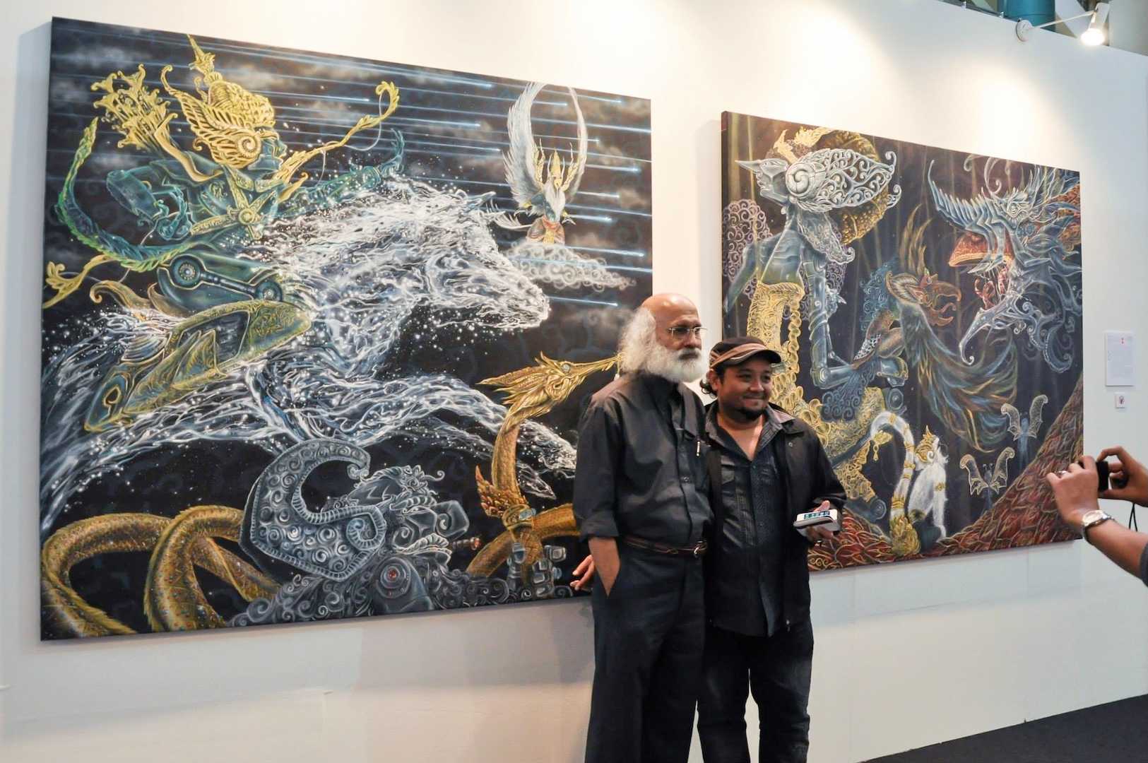 The journey of discovery at the GMCA is enhanced by the inclusion of a wide selection of young artists. The experimental nature of these young artists is now openly displayed collectively in one space, thus showing a cross-section of recent developments within the younger generation. The important role painting plays in contemporary art is evidenced by Fadli Othman’s commitment to presenting modern issues in traditionally formalistic aesthetics, bolstered by the easy confidence of his incredible skill. Raja Lope presents large-scale fantastic narratives which merge science-fiction and myths in a finely painted format which viewers easily appreciate. Witnessing new technical developments in the art industry is a key concern for visitors to art fairs, and they will not be disappointed by the boundary pushing experiments of Azad Daniel. Azad has developed a new technique which involves primed cement surfaces covered in auto-paint, and his glossy, pop-art esque results are a delight for sophisticated, urban audiences.