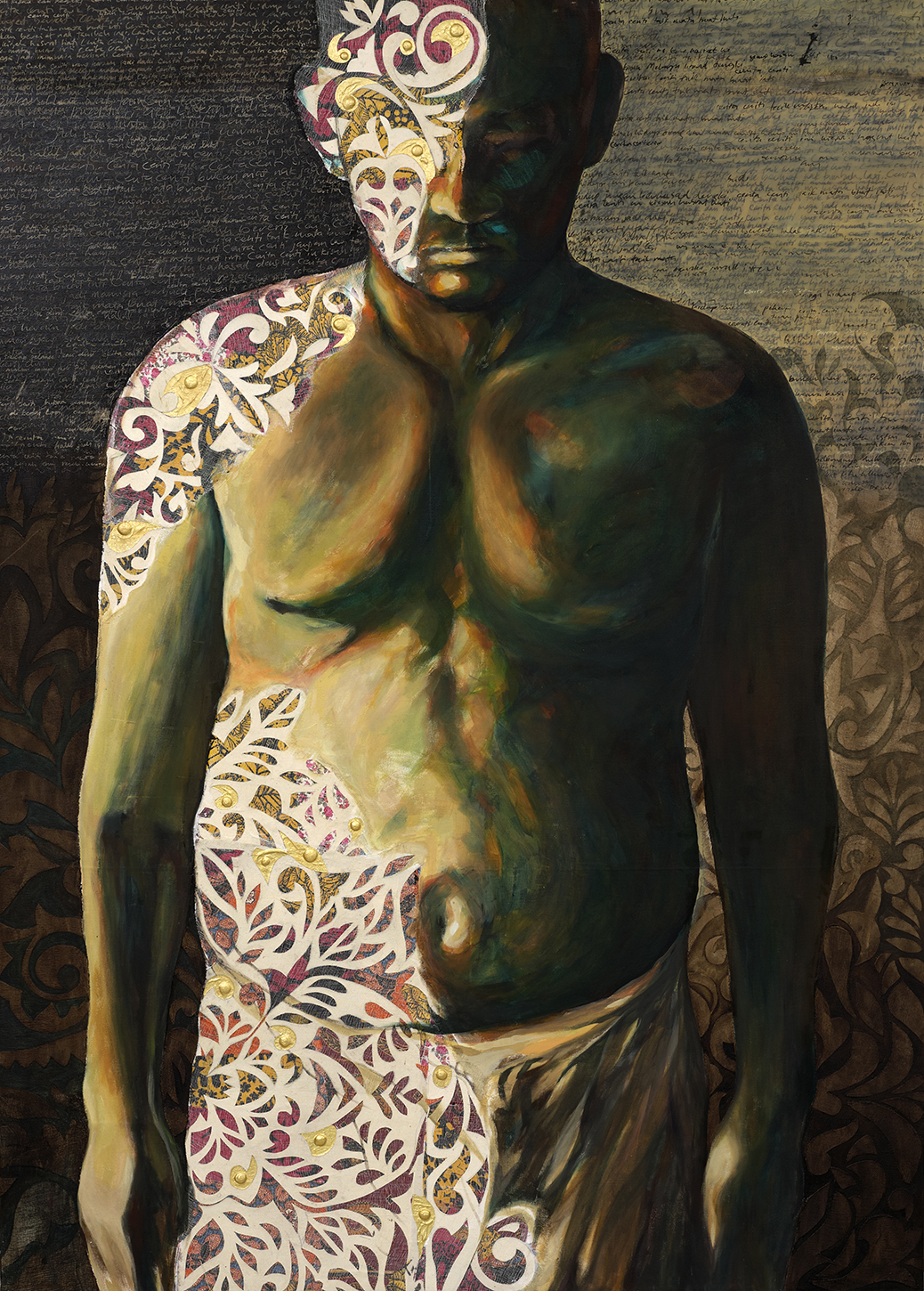 Art has long had a responsibility to document society’s culture, whether through the use of cultural artifacts, as seen in the works of Fauzin and Mohd Noor, or icons to act as metaphors for social and political shifts, as seen in Hamir Soib’s epic paintings. Known for his mastery of oil paint, Hamir delights in developing new mediums within his painting focused practice. Of all his experiments, he is possibly best known for his innovations with bitumen, magically transforming the coal tar into a media which he can control with the finesse of paint.