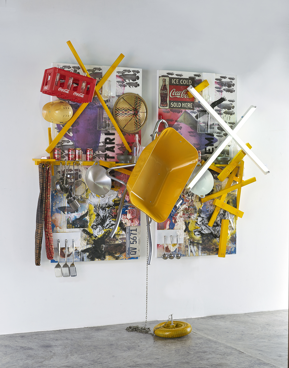 Blending similar inferences to heritage, society and patriotism with ultra modern materials such as neon lights and razor blades is Suhaimi Fadzir. Pioneer of a new type of assemblage, “archipainting”, Suhaimi uses his architectural training to understand spatial structures, assembling reliefs that present typically Malaysian artifacts in wholly current terms. This ability is prized with international curators, who increasingly look for cultural identifiers, and has earned Suhaimi invitations to show at the Dublin Biennale (2012) and Venice Biennale (Architecture) (2010, 2012). Additionally, he has had his works exhibited alongside famed photographer Ansel Adams, and has also shown at the world-renowned Saatchi Gallery.