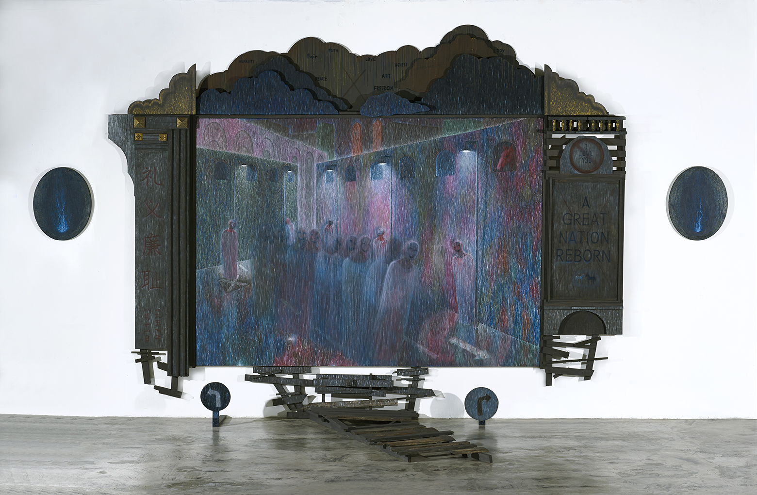 Just as innovative are the pyrographic prints of Haafiz Shahimi. Merging the laws of physics with printmaking, Haafiz adds new twists to the classic medium of print. It is interesting to be able to view his art in the same enclosure as Zulkifli Yusoff, whose use of print in his installations is a cited inspiration for Haafiz. Assemblage artist Azrin Mohd attempts to set new directions within his chosen genre by personally making each element within his works. The use of purpose-built rather than found objects enables the artist to tightly weave his concept and visual together, and so his messages on society, politics and culture are clearly transmitted. Rounding off the young artist selection is the talented and conceptual Annabelle Ng. Annabelle’s research-based practice and ability to create strong atmospheres within her installations are indicative of new international directions, and it is a treat for audiences to view an important work by this non-prolific artist here at the GMCA.