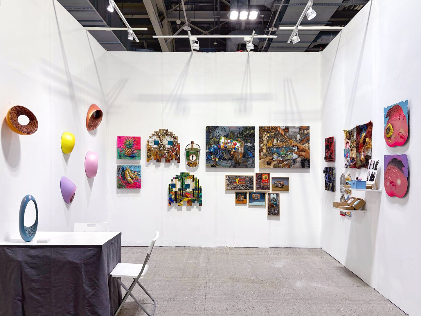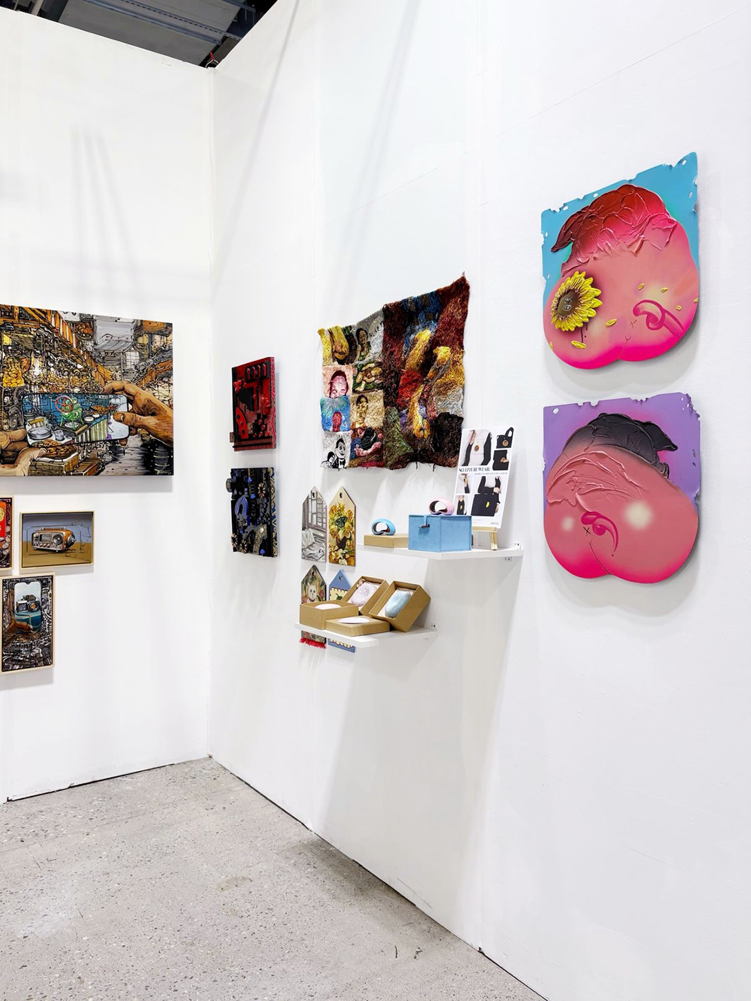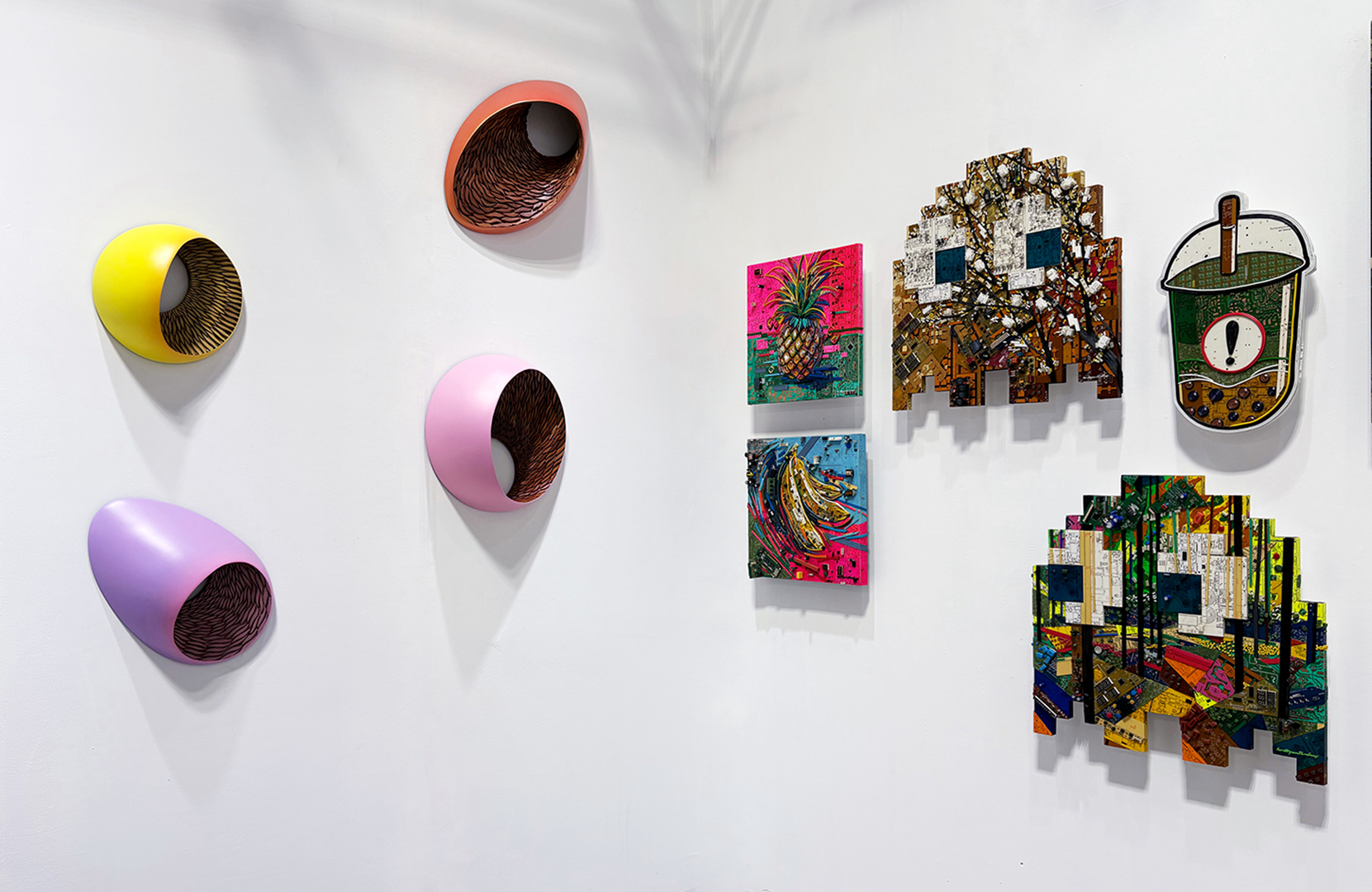 In her second solo exhibition “SEEK”, Tijan introduces cutout forms of Pac-Man ghosts, embedding natural imagery like forests and flowers within them. These works serve as metaphors for the maze-like pursuit of human desires and consumption, echoing the game’s endless chase. Through this visual language, Tijan reflects on the ecological consequences of modern living, transforming playful nostalgia into poignant commentary on sustainability and collective responsibility.