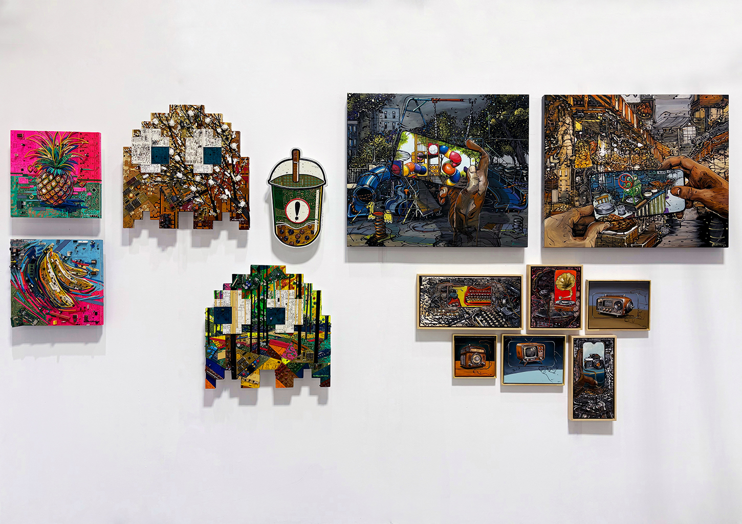 Balancing motherhood and domestic life, she became increasingly aware of post-consumer waste—electronics, toys, furniture, and textiles—which she began integrating into her work. Sourcing discarded materials from home, friends, and recycling plants, Tijan critiques consumer culture, materialism, and the environmental toll of modern life. Electronic waste, in particular, inspires her with its vivid color and intricate detail, forming the basis of her “New Formal” aesthetic—a Malaysian response to post-formalism through assemblage and sculpture.