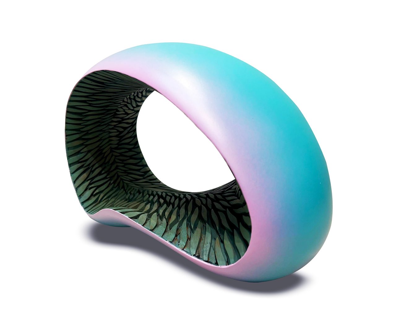Po Oi’s recent series, Circle Within a Circle and Seeds, expand his exploration of identity, memory, and transformation. Using fiberglass, automotive paint, and inlaid wood, he creates sculptural forms that speak to both personal and collective experience. While Circle Within a Circle delves into repetition and emotional cycles, Seeds imagines growth and heritage as internal forces. Together, these works reflect Po Oi’s ongoing commitment to crafting thoughtful, visually compelling narratives that bridge tradition and contemporary culture.
