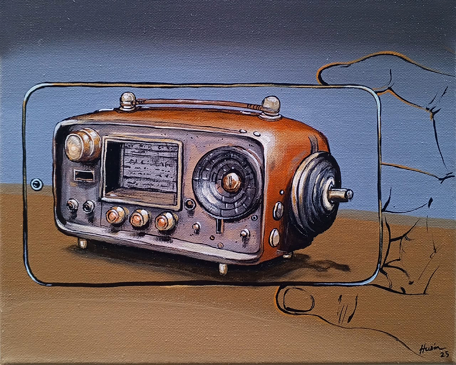 這件作品彷彿是一幅記憶的框架,捕捉了藝術家生命中曾經存在的一個場域。它呈現出過往仍在記憶中呼吸的片段——每個街角、每條斑駁的巷弄、每處曾充滿聲音與故事的空間。即便現實中的場所隨著時間逐漸褪色,作品卻以兩種對比的維度將其重現:一為逐漸衰敗的現實,另一則是經過理想化記憶重構的數位幻景。此作激起一種懷舊情感,也許是對童年片段或過往未曾察覺的美感的追憶,如今透過科技的視角重新詮釋。作品揭示了現代生活的諷刺:一方小小的螢幕能夠改變觀看的角度,掩飾瑕疵,塑造一種從未真正存在的美好。畫面中,一邊是灰暗、雜亂的現實世界——擁擠的市集、靜默斑駁的街道、在時光中破敗的遊樂場,以壓抑的色彩與銳利的線條呈現;而在螢幕內,一切卻顯得繽紛、有序與理想化,隱喻著數位美學如何遮蔽現實,並重塑我們記憶中的過去。