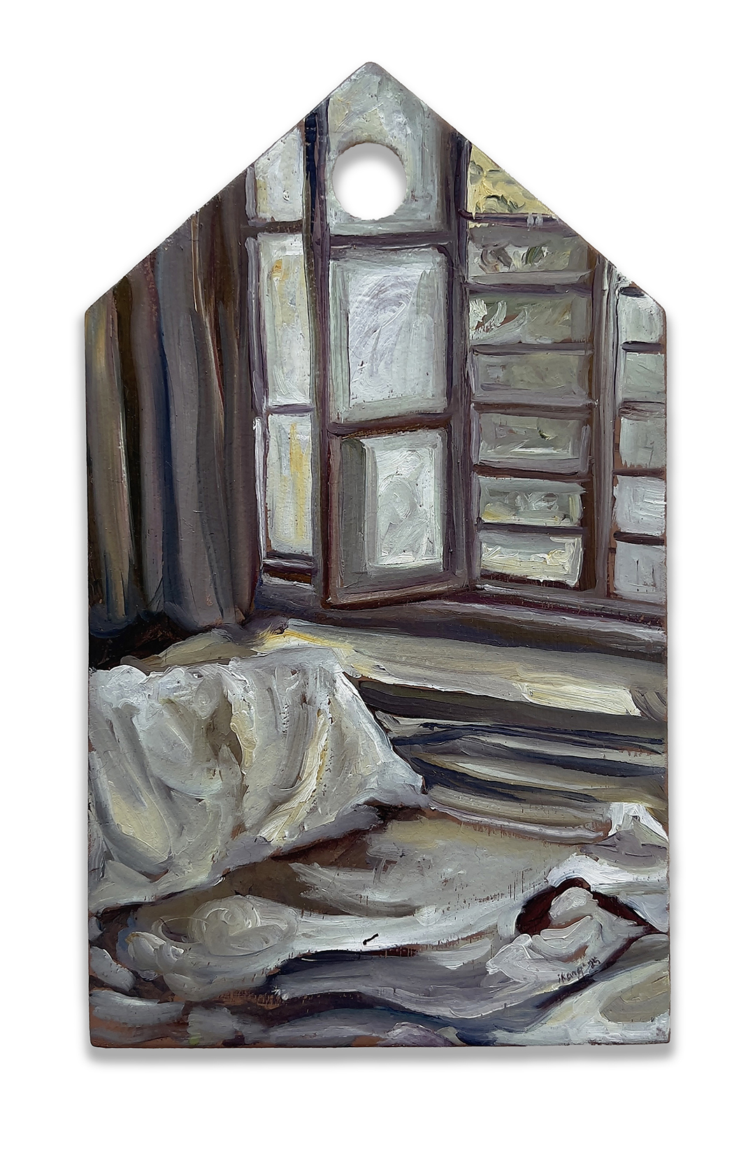 Often evoking the concept of “portals,” Gonzales’ works invite viewers into intimate spaces that balance privacy, comfort, and change. By combining architectural sensitivity with painterly detail, she creates quiet yet powerful reflections on how light transforms environments and, with it, the emotional resonance of the everyday.