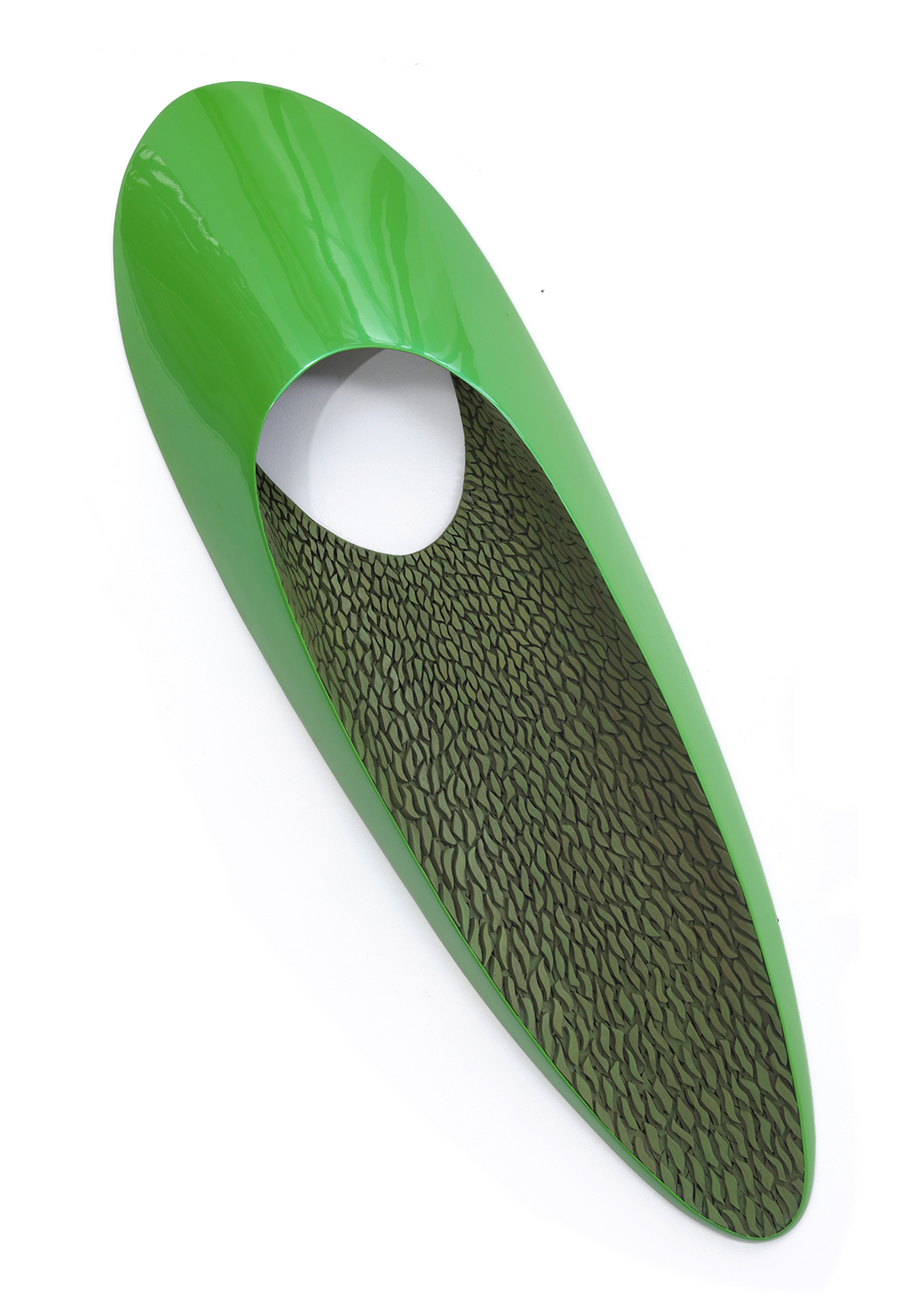 Po Oi Oblong – Green is Passion in Tranquility Fiberglass, 2K Auto Paint and Assemblage of Small Patterned Wood Cut Relief 20cm (H) x 185cm (W) x 55cm (D) 2024
