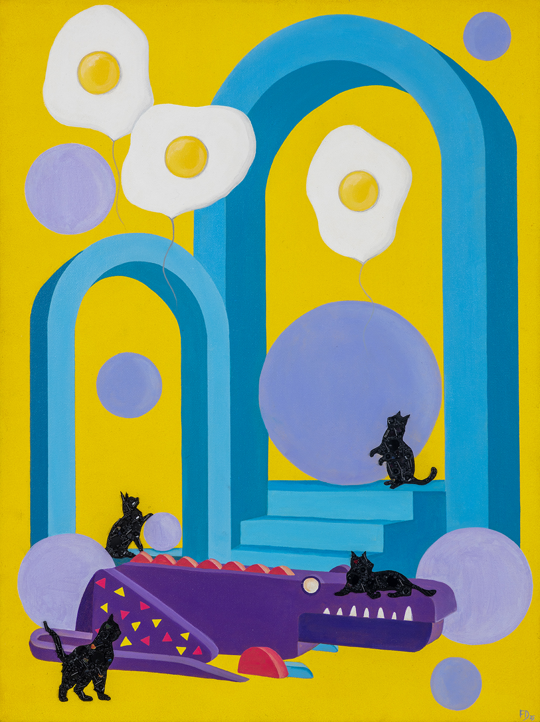 Koo Yean Ni’s work draws inspiration from the naïve, pure, and innocent qualities of folk art and children’s art. Her vibrant paintings, collages, and embroidery works reflect a spontaneous and unconstrained approach, shaped by her love for folk traditions and years of observing children’s creativity through teaching. Embracing everyday life, cultural memory, and traditions of her homeland, she records and preserves socially significant moments through a joyful process of imaginative play. Her works carry anthological, nostalgic, and sentimental qualities, inviting viewers into a world of warmth and sincerity.