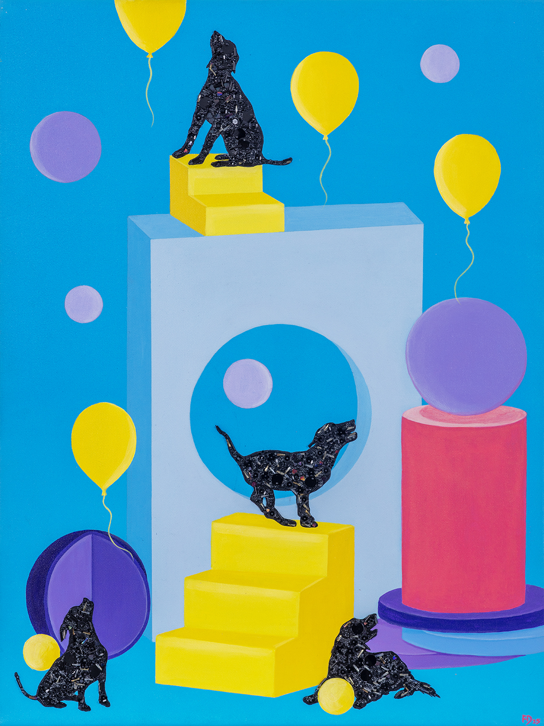 “Playground of Joy: Cats and Dogs” is a celebration of innocence, companionship, and the boundless freedom of imagination. Inspired by the way cats and dogs inhabit the world—with wonder as their language and play as their purpose—the work transforms the playground into a metaphorical space of shared happiness. Through color, form, and movement, it captures fleeting yet profound moments of joy that bloom unapologetically, free from self-consciousness. In a world often burdened by seriousness, this work invites viewers to step back into simplicity and remember that joy is not found—it is created, together.