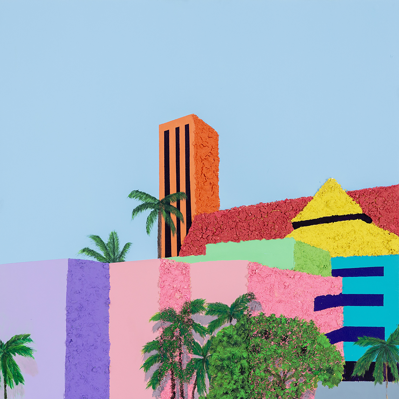 City in Technicolour reimagines the urban landscape as a vibrant, living entity where architecture transcends muted rigidity to pulse with bold, tropical colours. Geometric forms and palm trees converge in playful chaos, reflecting a city infused with warmth, rhythm, and imagination. This work challenges conventional perceptions of urban spaces, suggesting that cities are not merely built from concrete and steel, but also from the dreams, emotions, and vibrant energies of those who inhabit them.