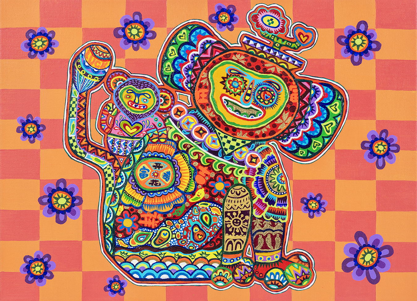 The Joyful Guardians series celebrates companionship, protection, and emotional healing through playful imagery and vibrant colors. Characters combining elements of animals, toys, and human emotions embody guardian spirits with innocent yet determined expressions—symbols of quiet strength that accompany us through life’s stages. Checkerboard patterns and blooming flowers evoke rhythm, growth, and hope, while the interplay of vivid hues and intricate details creates a dreamlike atmosphere that uplifts and comforts. Guardian of Sunshine uses warm orange-red tones to symbolize vitality, joy, and positivity—like a friend who greets you each morning with light and hope. Guardian of Dreams embraces purples and deep hues of night, portraying a gentle protector of imagination who brings comfort and safety in quiet hours.