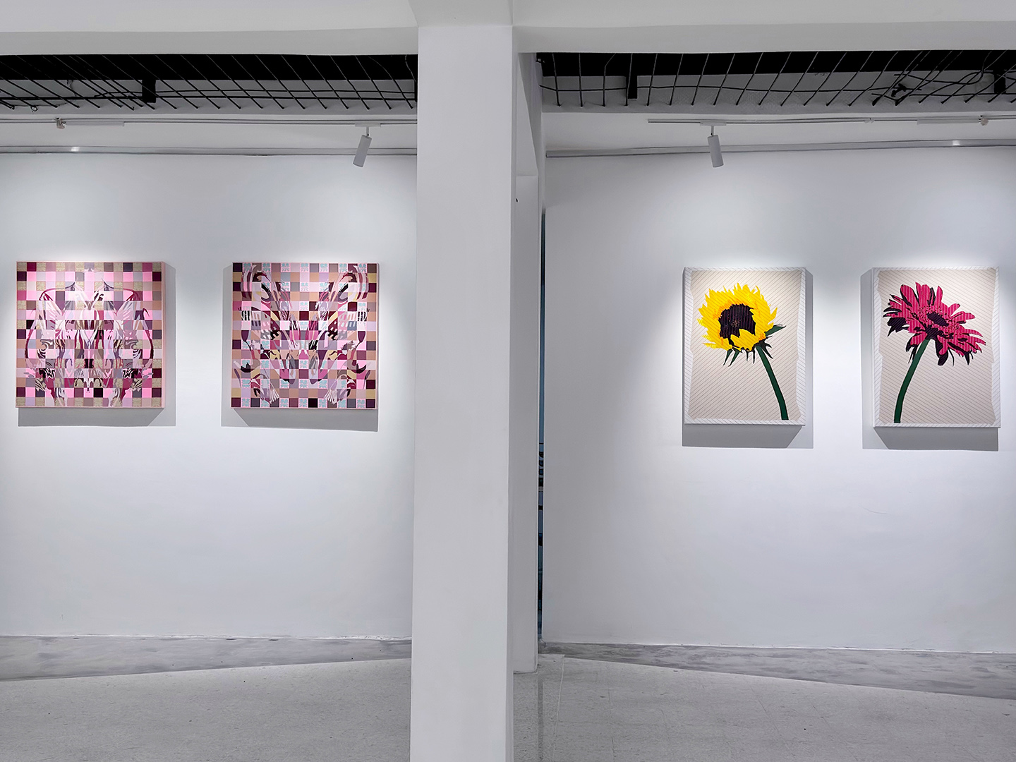 “In every universe, I will always be your…” draws inspiration from the post-digital colours found in cinematic media, particularly the acclaimed film Everything Everywhere All at Once (dir. Daniel Scheinert & Daniel Kwan). This work reinterprets the film’s vibrant, layered aesthetic as a visual language to explore multi-realities, emotional depth, and the transitions of life. The use of colour becomes central—simultaneously playful and purposeful—while upcycled materials and sewn textures underscore the artist’s appreciation for spontaneity and imperfection in contemporary art.