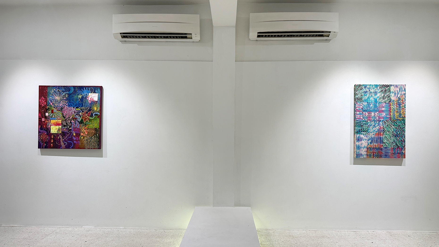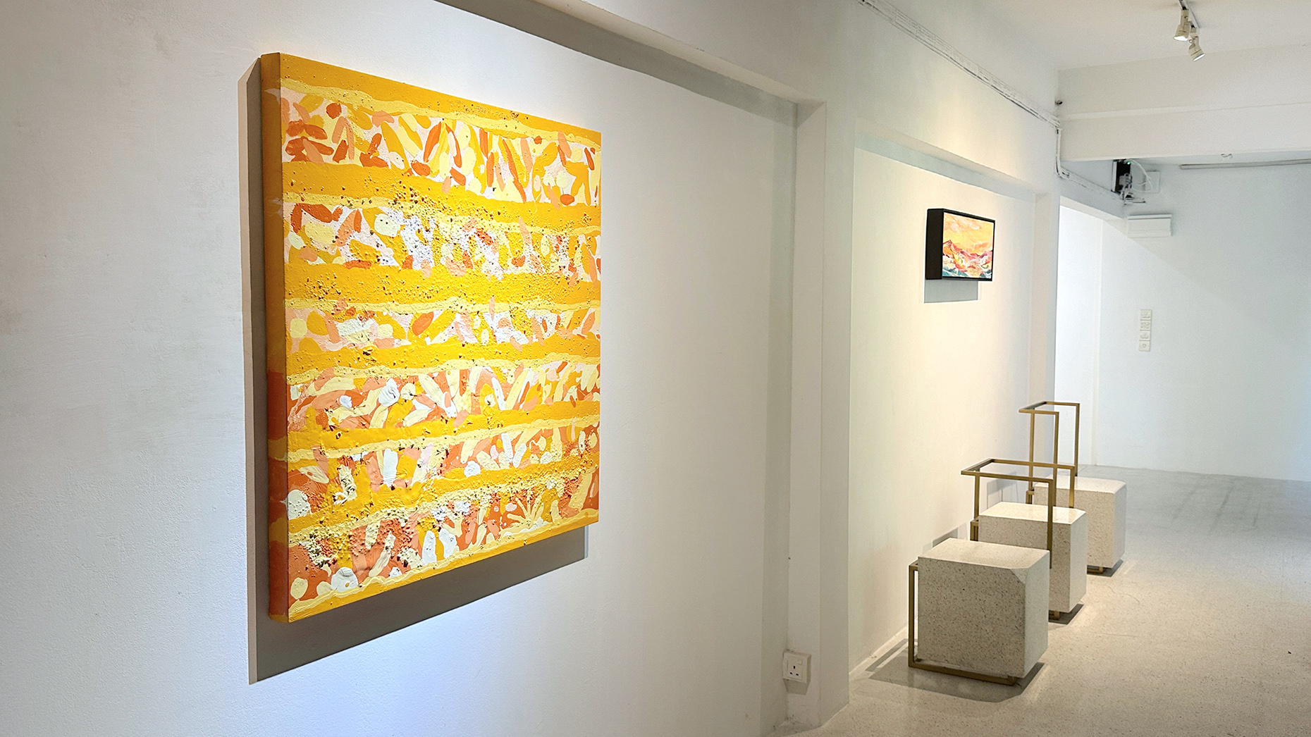 Faez Fahmi (b.1998) is a Kelantan-born Malaysian artist with a Master’s in Fine Art and Technology from UiTM Shah Alam. His practice is deeply informed by his upbringing in Bachok, where the countryside and seaside shaped his sensitivity to light, form, and time. In his debut solo exhibition “Luar Jendela” (“Outside the Window”), Faez translated these experiences into abstract, poetic interpretations that merge cultural heritage with contemporary sensibilities. His distinctive use of white cement for textured surfaces, alongside dripping acrylics and floral references, reflects both the vibrancy of Kelantanese life and his Malay roots.