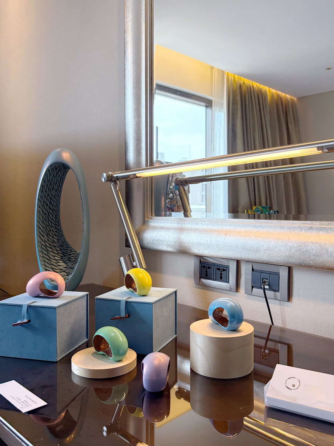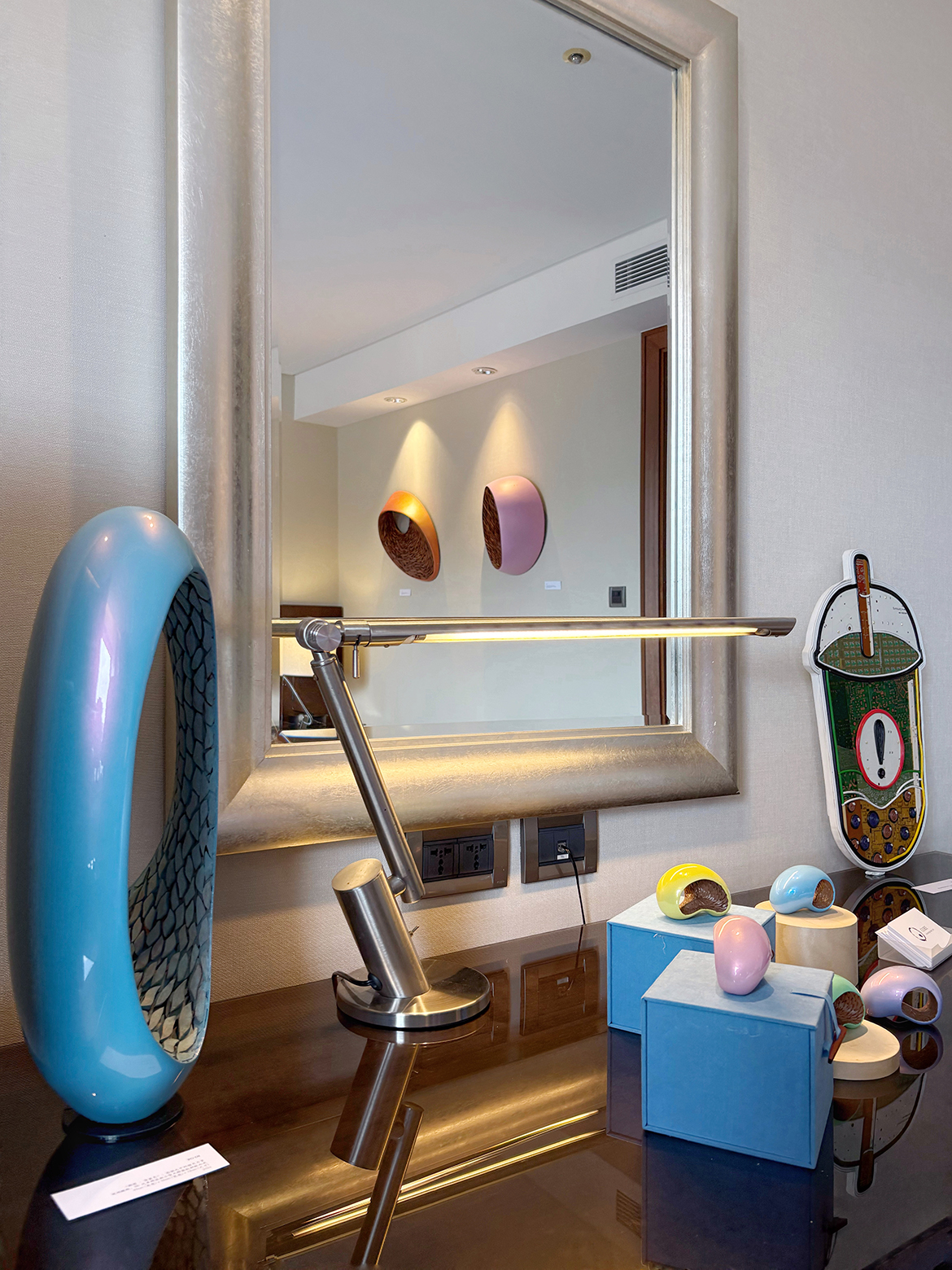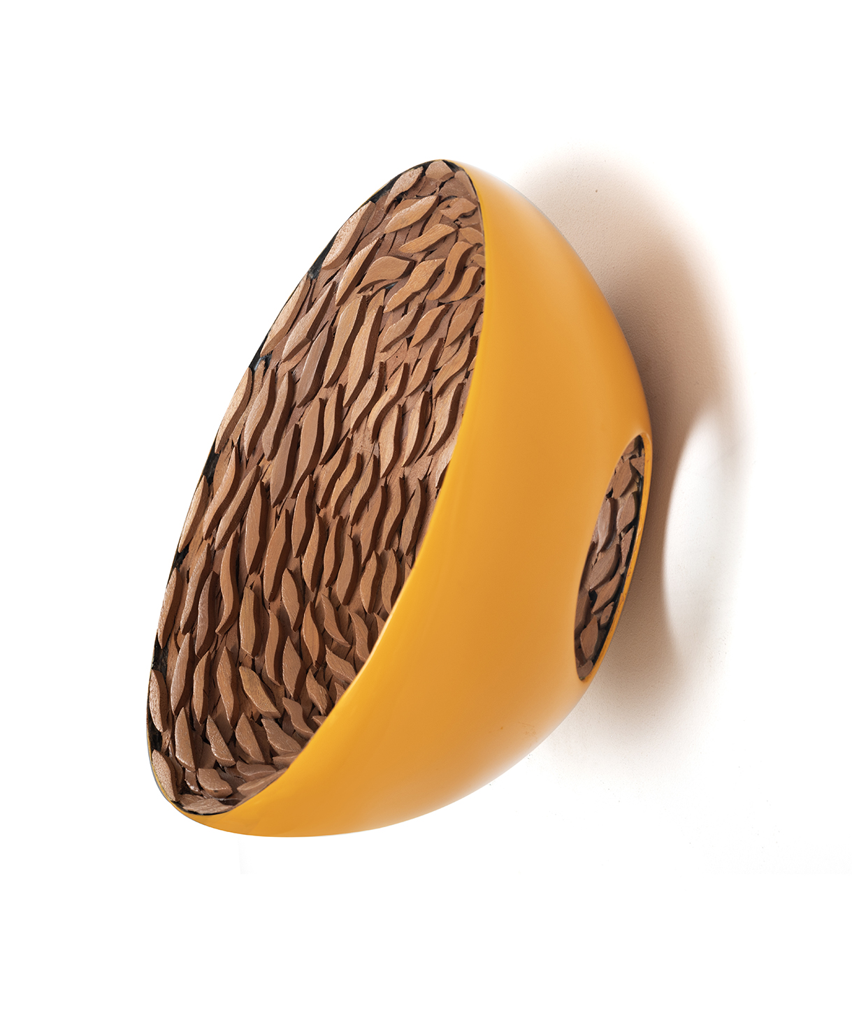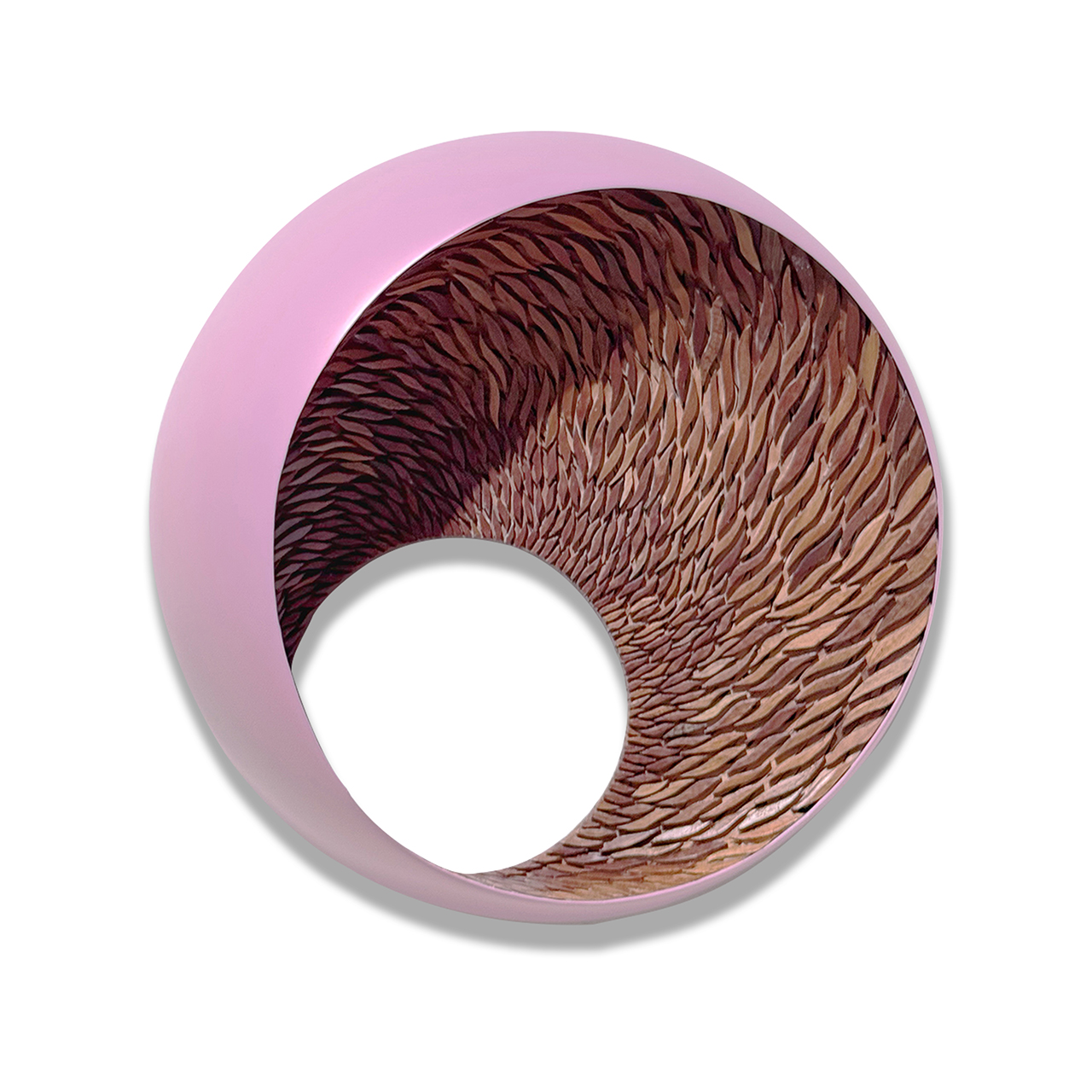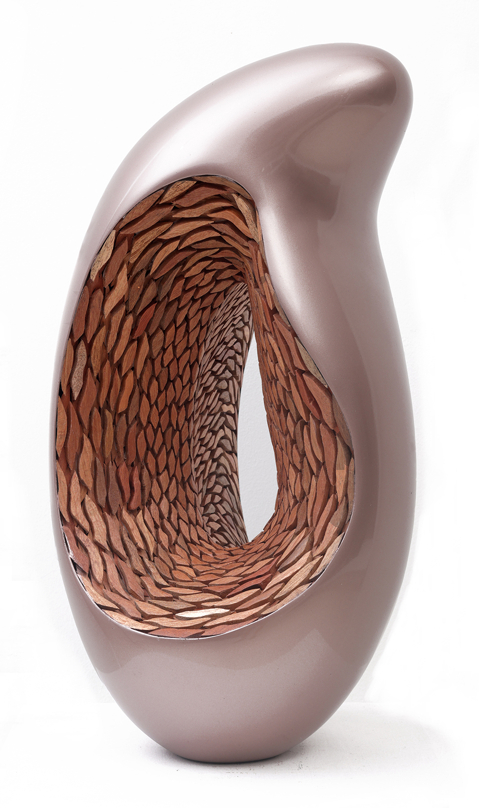 Po Oi’s recent series, Circle Within a Circle and Seeds, expand his exploration of identity, memory, and transformation. Using fiberglass, automotive paint, and inlaid wood, he creates sculptural forms that speak to both personal and collective experience. While Circle Within a Circle delves into repetition and emotional cycles, Seeds imagines growth and heritage as internal forces. Together, these works reflect Po Oi’s ongoing commitment to crafting thoughtful, visually compelling narratives that bridge tradition and contemporary culture.