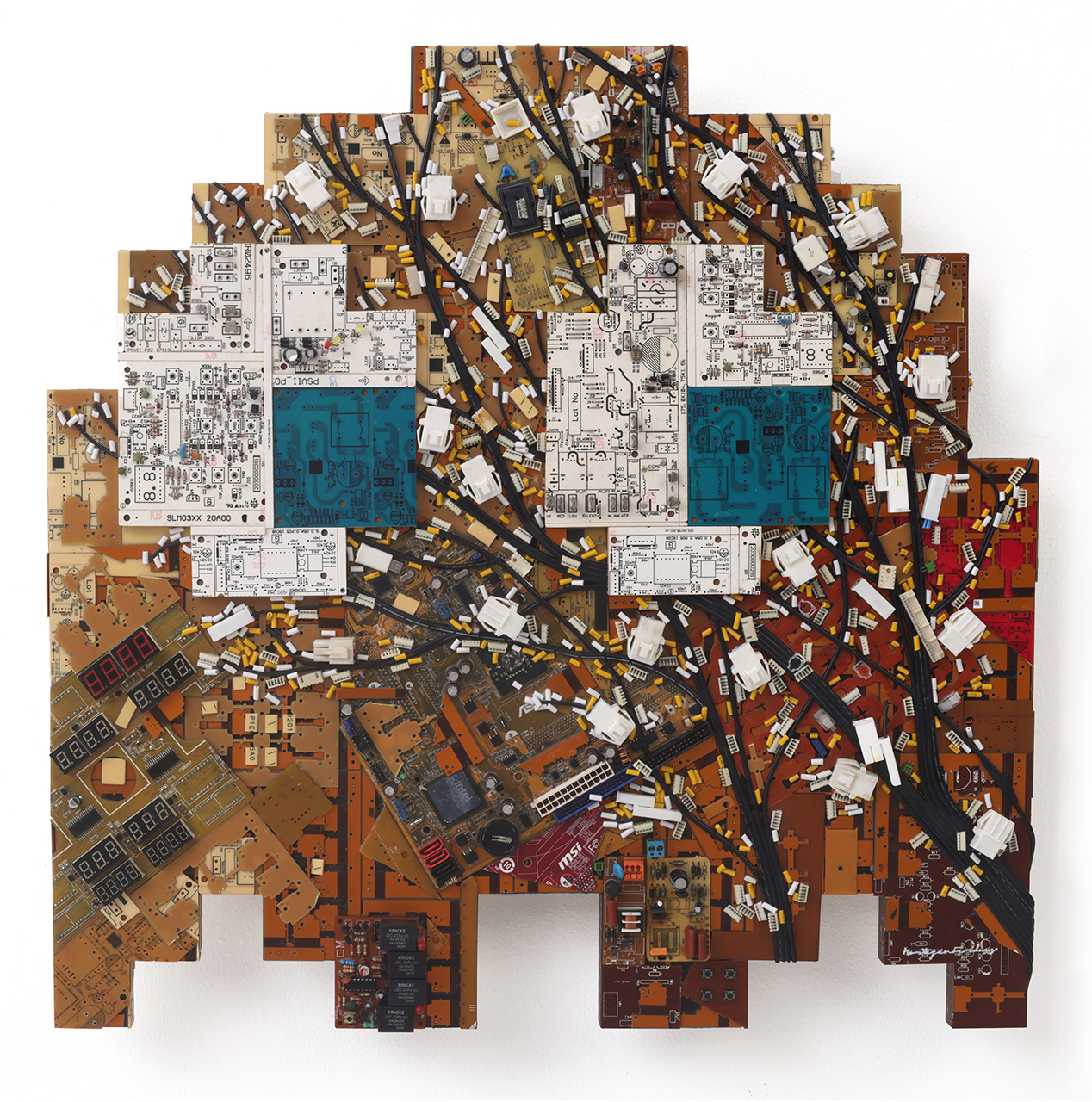 Nor Tijan Firdaus (b. 1986) or known as Tijan is a Malaysian contemporary artist known for her innovative use of electronic waste in mixed media art. With a background in Fine Arts, she transforms discarded technology into intricate works that challenge conventional notions of beauty and value, while highlighting the environmental impact of consumerism. Her practice has positioned her as a leading voice in eco-conscious art in Malaysia, earning recognition through exhibitions, awards, and collaborations with environmental organizations. Tijan’s work not only showcases technical and conceptual depth but also inspires broader conversations on sustainability, influencing a new generation of environmentally aware artists.