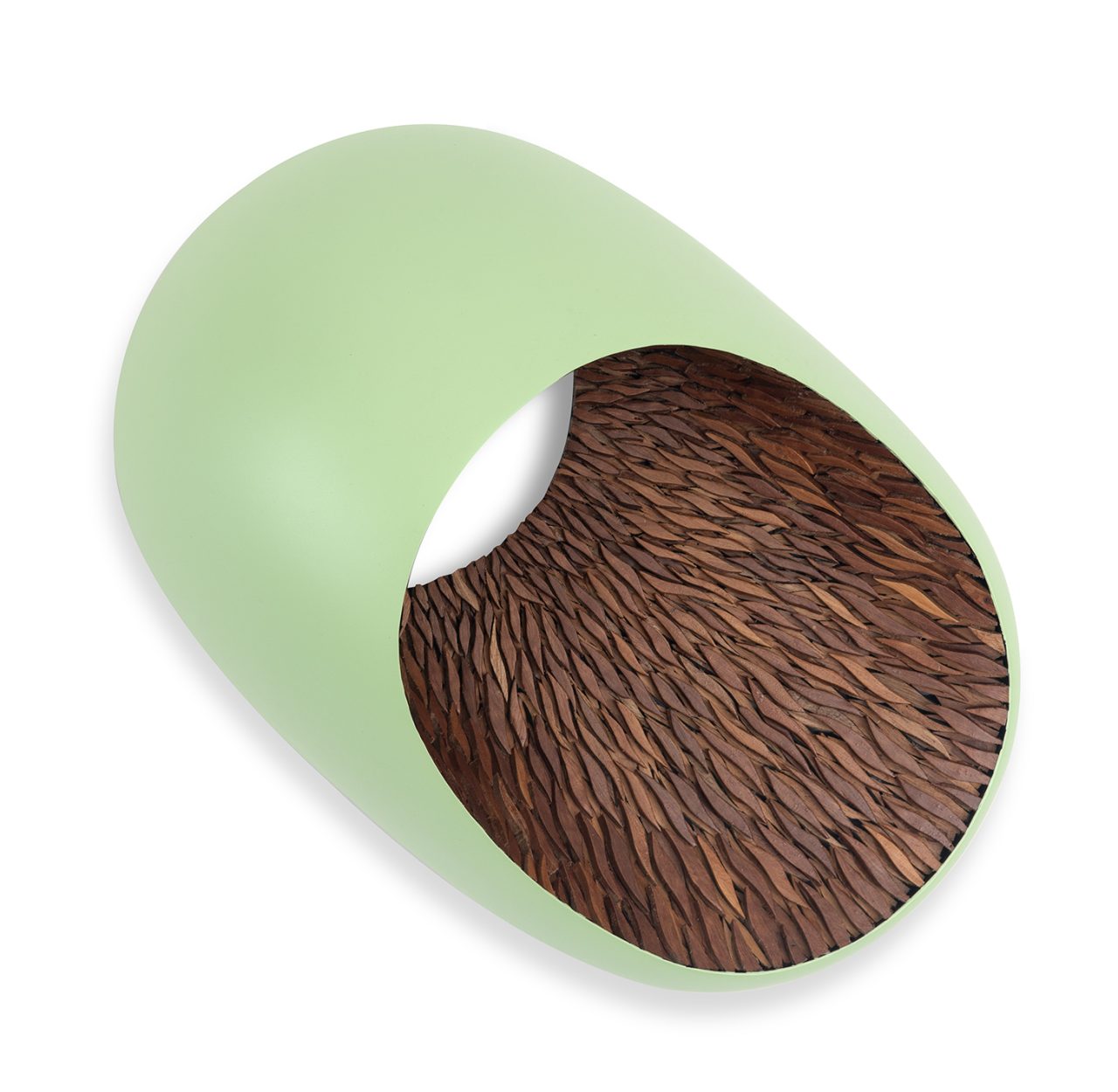 Po Oi 近期創作系列《圈中之圈》與《種子》延續其對身份、記憶與個人轉化的深層探問。他運用玻璃纖維、汽車烤漆與木材鑲嵌等材料,塑造出兼具個人經驗與集體意識的雕塑形式。其中,《圈中之圈》聚焦於重複性、情感循環與包覆感;而《種子》則將種子視為內在能量的容器,承載著成長、傳承與自我覺醒的意象。這兩個系列共同展現了 Po Oi 致力於在傳統與當代之間建立對話,以細膩工藝與象徵語彙構築出兼具沈思與視覺張力的敘事風格。